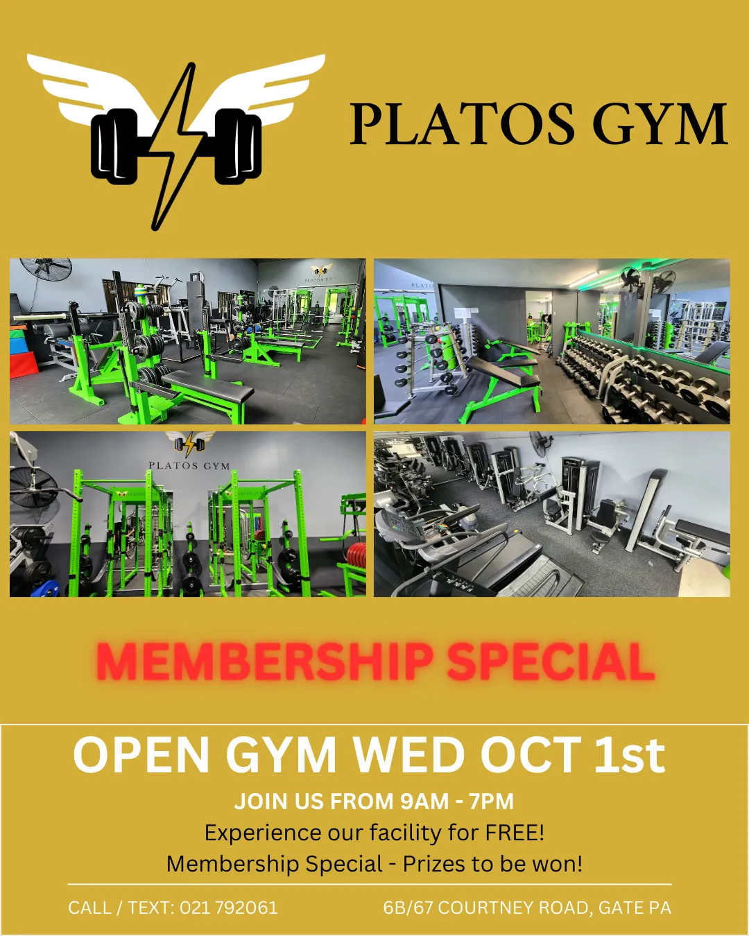 Experience Plato’s Gym with a Free 3-Day Gym Trial! Unlock your fitness potential with a complimentary 3-day trial at Plato's Gym, available during staffed hours. Whether you're new to working out or a seasoned athlete, come see what sets us apart. Explore our state-of-the-art equipment, meet our expert trainers, and enjoy a supportive community—all free for three days!